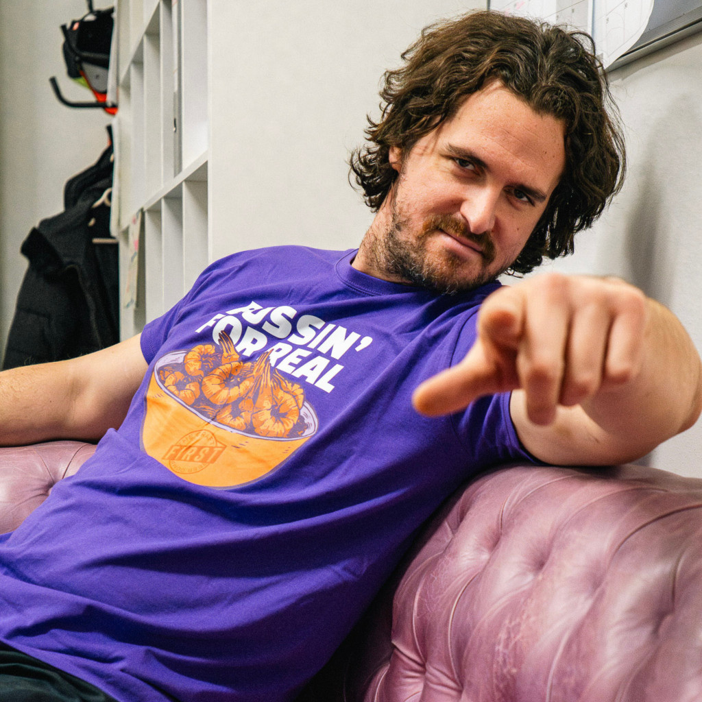 Deep Purple színű póló választható méretben, mely a Bussin' For Real Dupla IPA grafikájával van dekorálva.